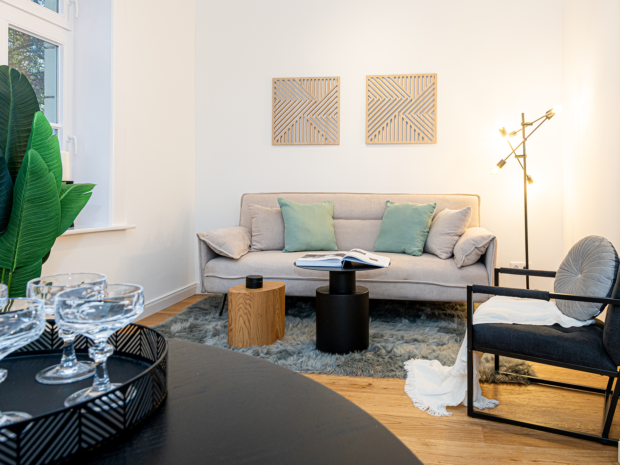| Besonderheiten: | Wandauslässe in Stuckprofilen integriert |