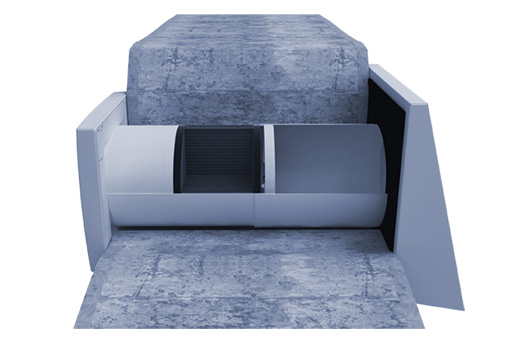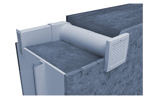 Statt durch eine Kernlochbohrung kann das Lüftungsrohr des Gerätes auch mittels Rohbauträger in die Wand eingesetzt werden. Der Rohbauträger besteht aus EPS (Expandiertes Polystyrol) und wird während der Rohbauphase in die Wand eingemauert, was die nachträgliche Kernlochbohrung überflüssig macht. Der Rohbauträger kann beliebig an die Wandstärke angepasst werden. Ab 365 mm Mauerdicke werden zwei Rohbauträger kombiniert.