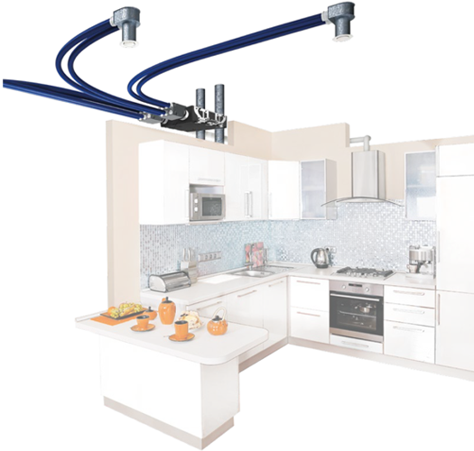 Eine klassische zentrale Anlage mit Verrohrung. Größter Nachteil: erhöhter Platzbedarf für die Anlage und Kosten für die Verrohrung und die spätere Wartung.